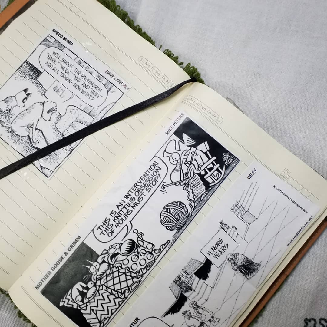 I created this journal from old projects that weren’t completed. The cover was from a piece of felt I was trying to learn how to embroider. The trim I used was found in my trim stash, which I will discuss in another post. I will say, always save trim. I even found the journal around the house, but it was so plain. Cutting and gluing, I’m creating. I decided to not only write my thoughts in my masterpiece, but save comics and other items that reflected our journey over the past few years. I have written my thoughts, but I really enjoy laughing at other people’s interpretations of the events. Being born in the sixties, I lived through what I thought were desperate times. I was surprised when I realized I hadn’t seen it all. So, my pretty (to me) journal welcomes me to document the good and bad of these times. If you CREATE a journal like this, you will never forget what you survived. Go try it.