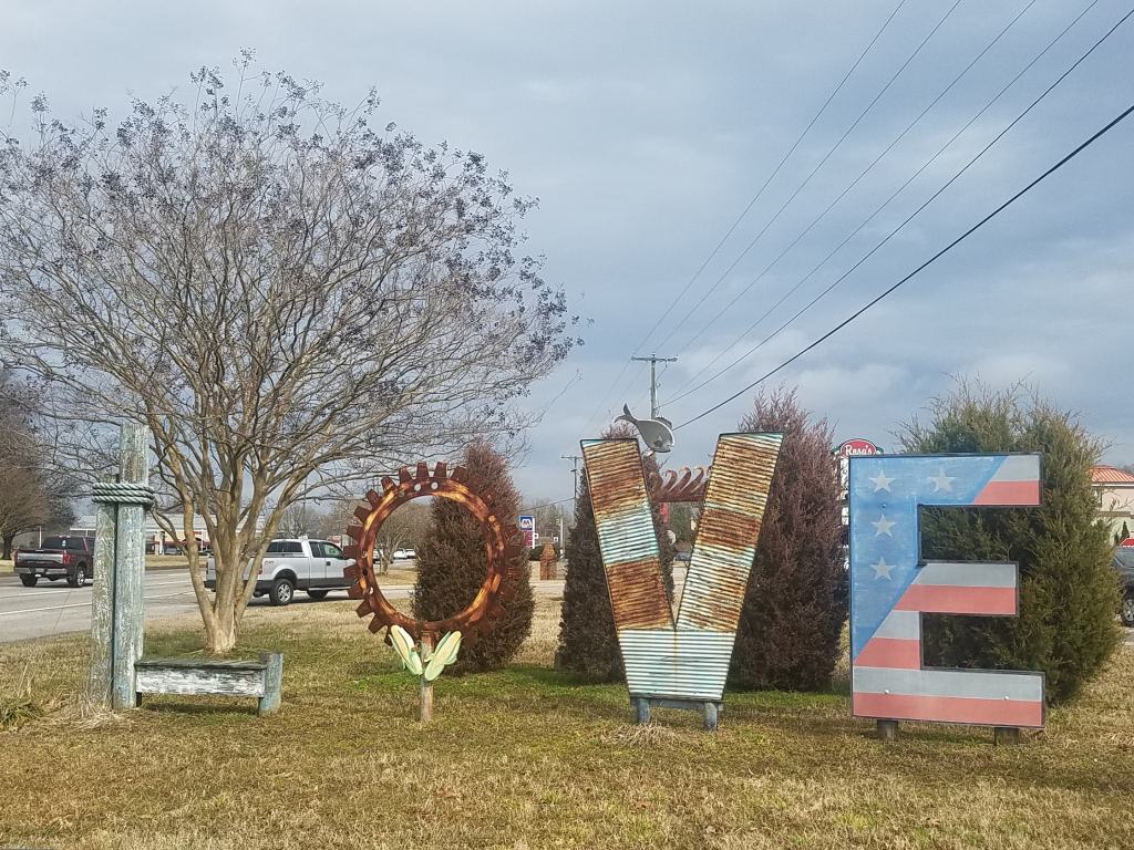 The letters in the sign tell something unique to that region. Located in Hopewell, Virginia, in this sign the “L”represents the pilings of a pier because the city has four marinas. The “O” is for business and agriculture. The “V” is made from metal, which was taken from a 100 year old barn. It represents the James and Appomattox Rivers coming together. The “E” with its stars and stripes pays homage to the area’s military. So go EXPLORE some LOVE signs. Share your Favorite ones with me and will continue to share the ones I find. Don’t forget to #LOVEVA.