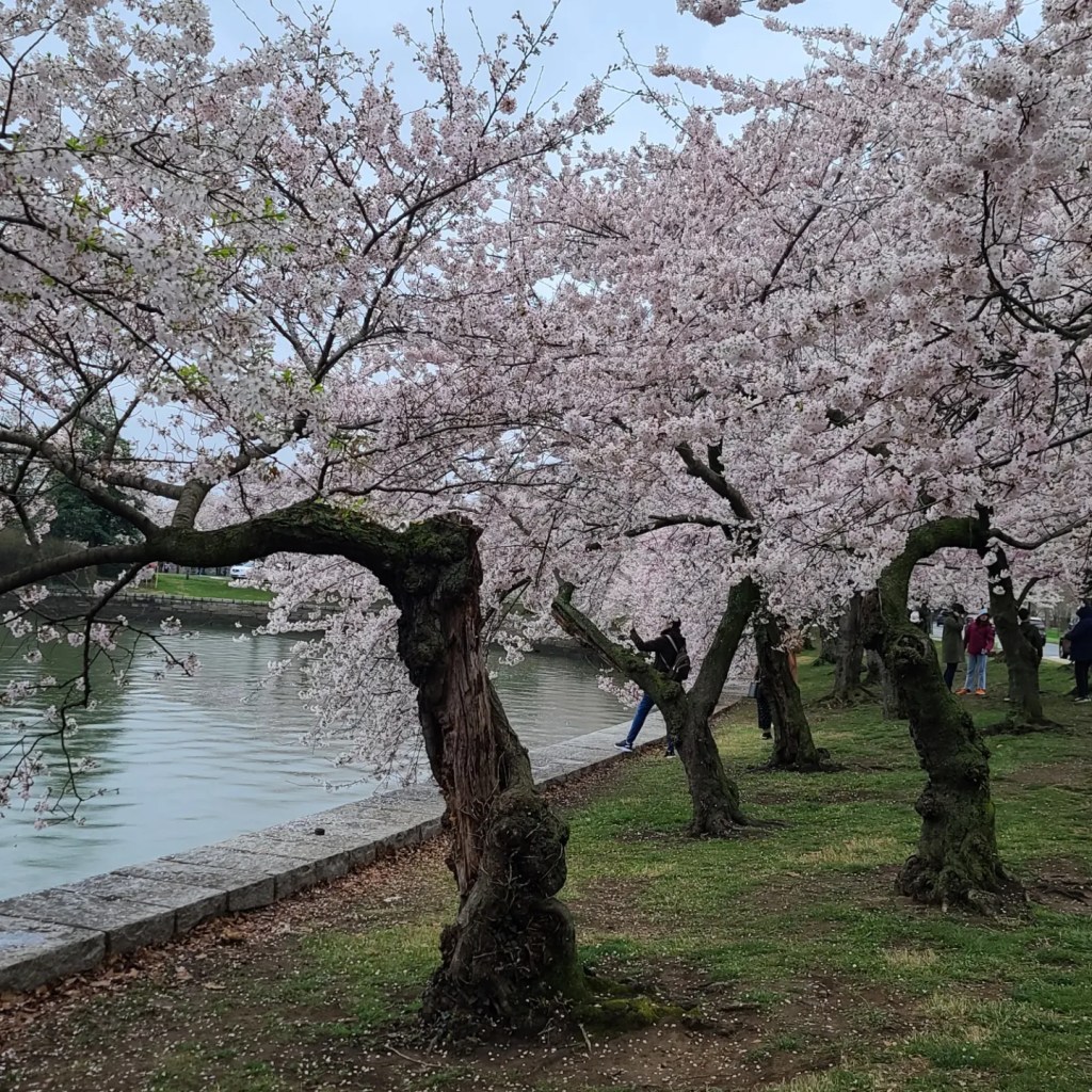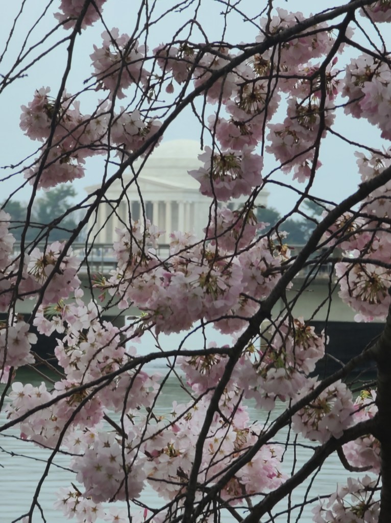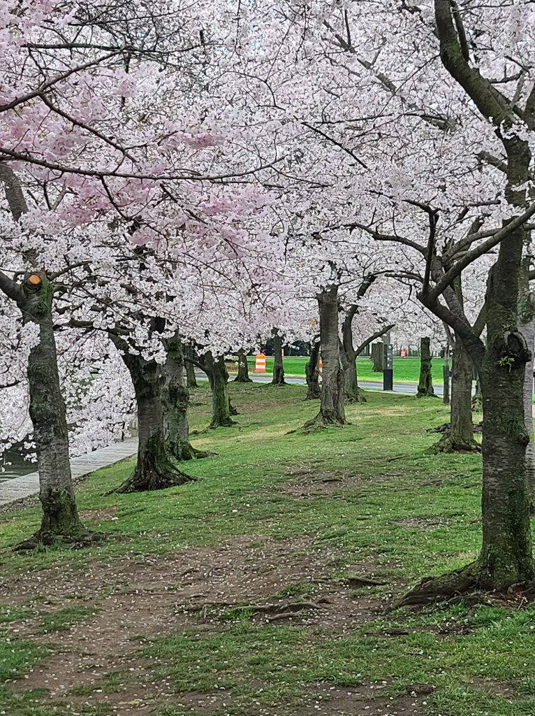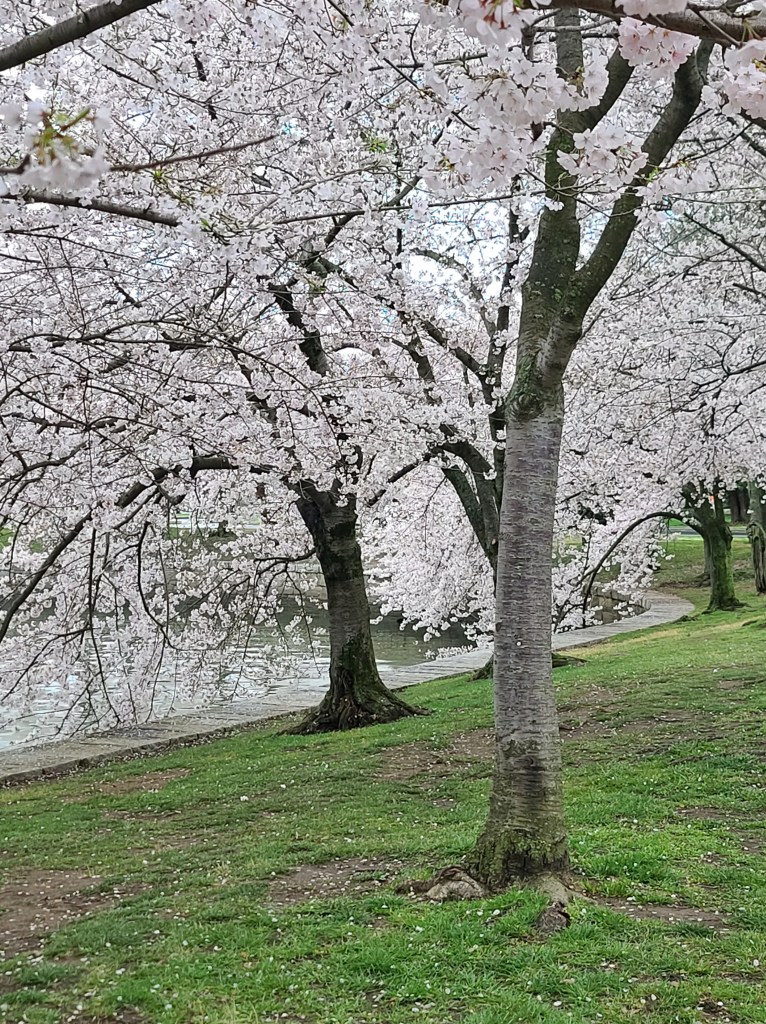 Look at these beautiful trees. Did you know that the Cherry Blossom is Japan’s national flower. They are called “sakura,” which are a symbol of love and tenderness. In Japan, the trees are a symbol of renewal and hope. In the U.S. they are a symbol of friendship and hope between the two countries. There are 200 varieties of Cherry Blossom trees in DC. We mainly have the Yoshino hybrid version. Japan gave us 2000 tress 1910, but they were infrsted with insects. So they had to be destroyed. Then they gave us another 3,000 around 1912. We have a lot of trees in our area, but Macon, Georgia, is credited with over 350,000 trees. It is a tradition to have a picnic under the trees in Japan. Or you can just take a stroll around the Tidal Basin. But, you only have one week of bloom time. Whatever the way you choose, you will enjoy their beauty.