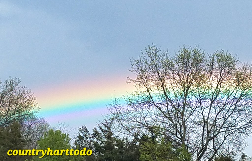 Rainbows are a symbol of hope. The word comes from an Old English word “renboga,” “regn” meaning “rain” and “boga,” which is “arched.” I love it when I can capture the multiple colors in a rainbow. They credit finding good luck at the end of the rainbow. I know when you see a rainbow after a storm, good times will follow.