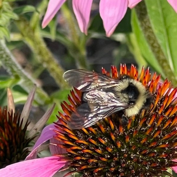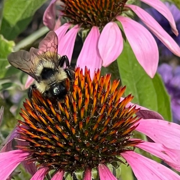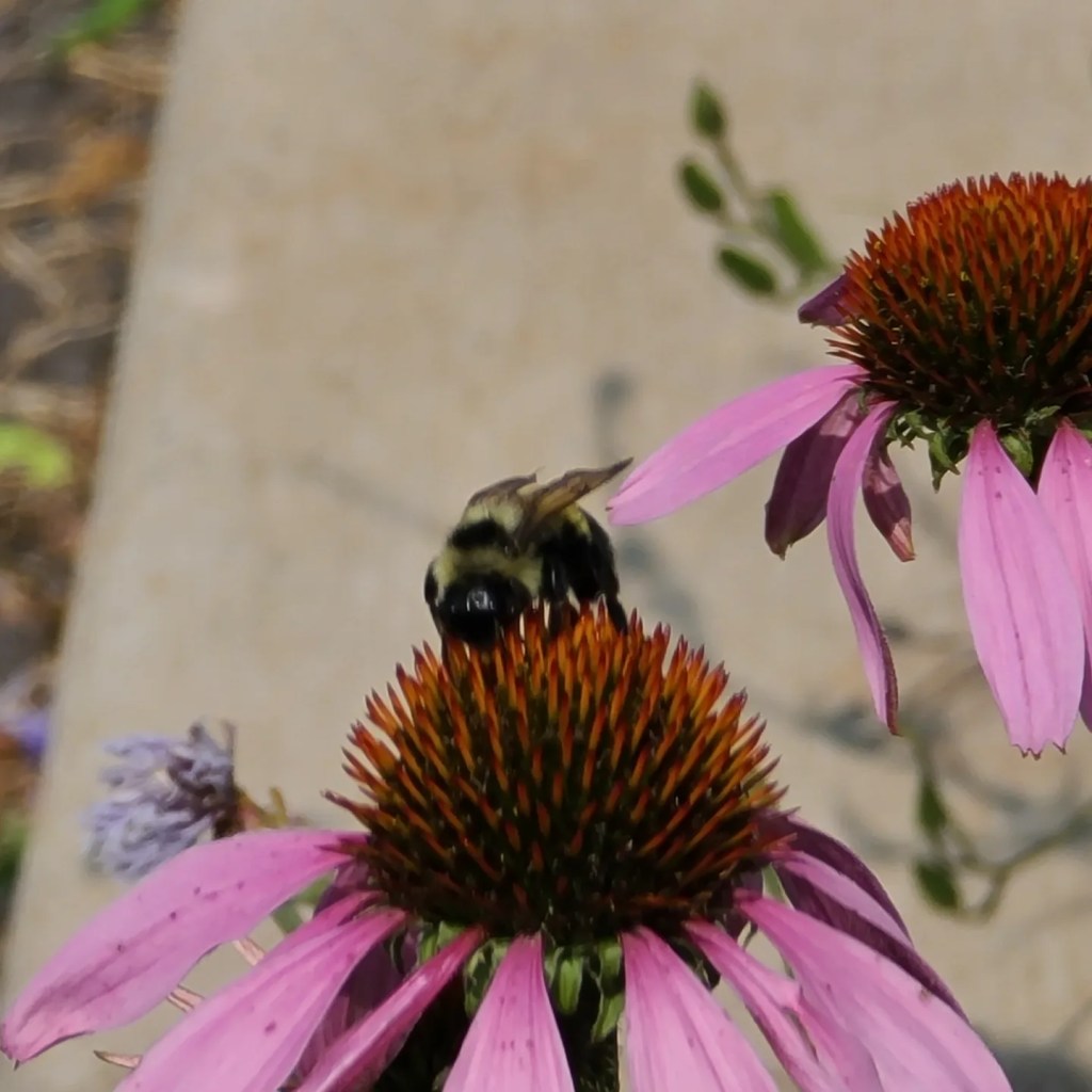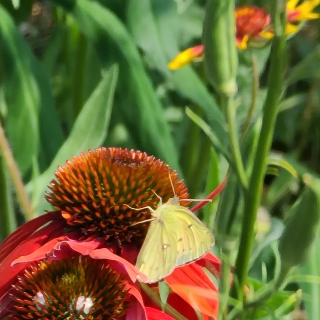 Look how hard this bee and butterfly are working. I love it when I find scenes like this on my walks. It gives me hope for our environment.