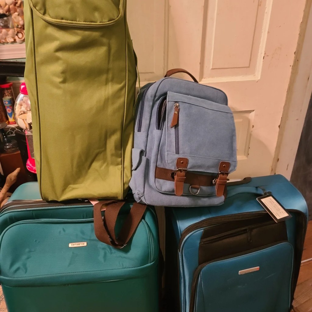 Four days and counting until I leave for my missionary trip to Costa Rica. I know this looks like a lot to take, but those who know me won’t believe I got all my clothes in one suitcase. The green bag is my bed, which fits in one of the blue cases, along with, of course, a quilt and fabric to donate. The backpack is full of craft supplies and gifts for kids. I really love the color of these cases. Years ago, I decided to get bright colored luggage to distinguish it from all the other black cases. Plus, it reminds me of blue water. Which always gives me joy. Para vida!