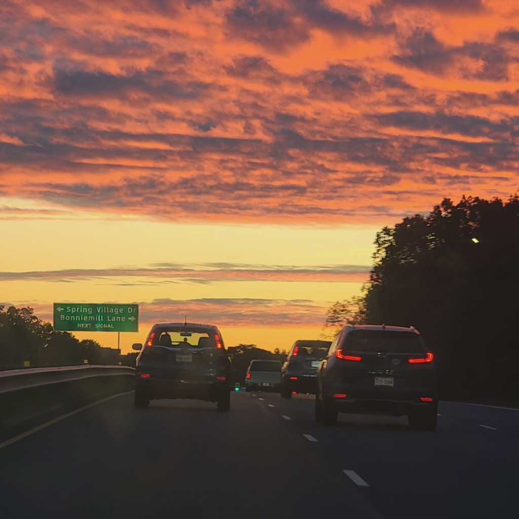 For the past two weeks, I had to be on the road at 5 am. I didn’t think the traffic would be so horrible. But, I was pleasantly surprised by the incredible sunrise. This daily treat made my commute so uplifting. I enjoyed watching the sky wake up. Like I have said, you can take any negative situation and turn it into something positive. You just need to “look” for the beauty.