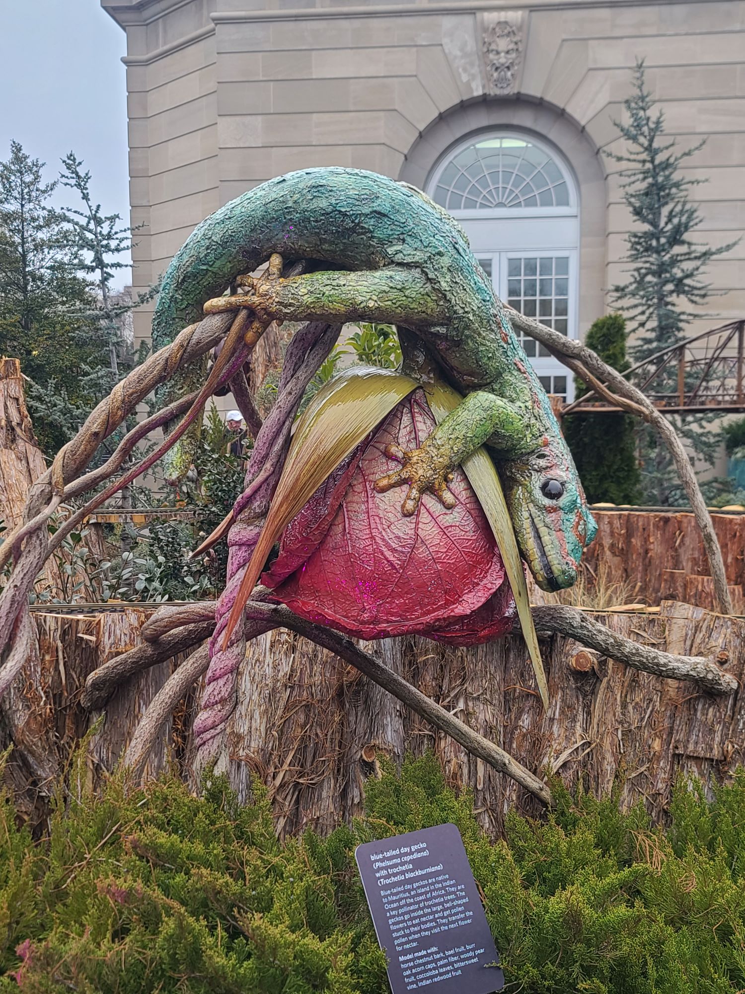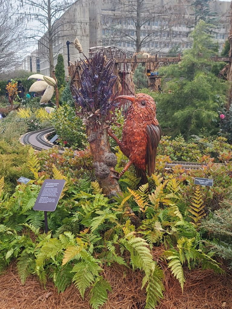 All of these beautiful creations represent the pollinators and the flowers they help. The sculptures are made with natural materials. The National Arboretum is not only a place to see beautiful flowers, but they do an excellent job of educating. It’s also fun to visit when it’s cold outside.