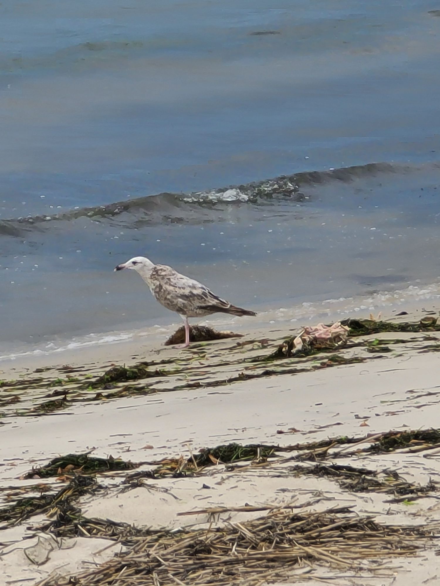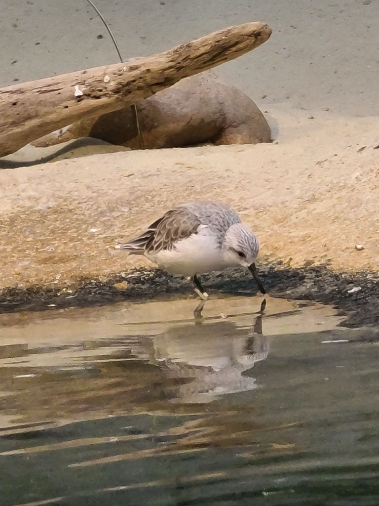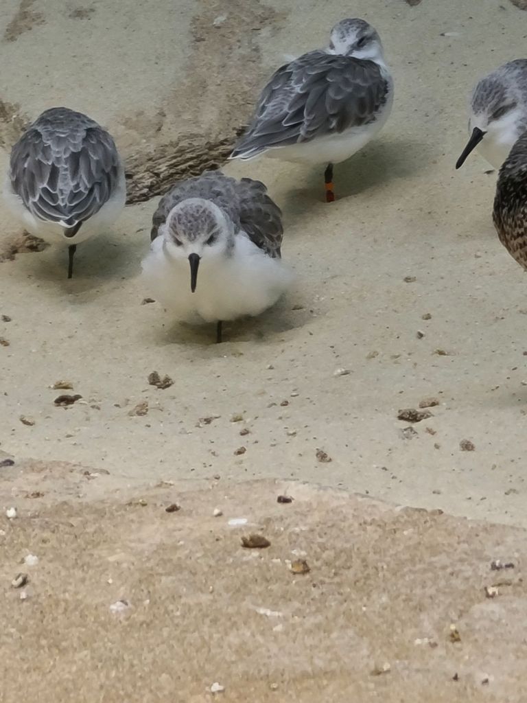 I enjoy watching shore birds chase waves. At times, they look like they have one leg. These sanderlings generate heat in their legs. So they tuck one up near the stomach to heat their whole body. They really know how to have fun at the beach. We should all learn to play with this much enthusiasm.
